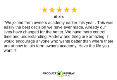 "It’s so much more, it’s such a complete package that we didn’t even realize when we were signing up. Getting a room full of fantastic people who you can learn from as well as the staff of Farm Owners who have just such a wealth of knowledge with mindset and coaching and just the accountability. The benchmarking results that we got three years ago as opposed to the ones we got now are just amazing. The roadmap for our future is looking bright. We’ve got the skills and the tools that Farm Owners have given us and yes, onwards and upwards for us."